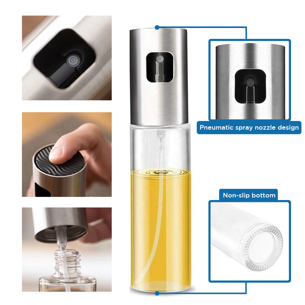 ✨Super Easy to Use. The oil sprayer employs a simple method of pump and press to create a fine mist of the oil that you have filled in the jar.