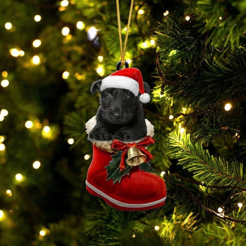 Scottish Terrier In Santa Boot Christmas Hanging Ornament SB122