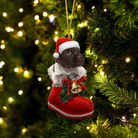 Wirehaired Pointing Griffon In Santa Boot Christmas Hanging Ornament SB208